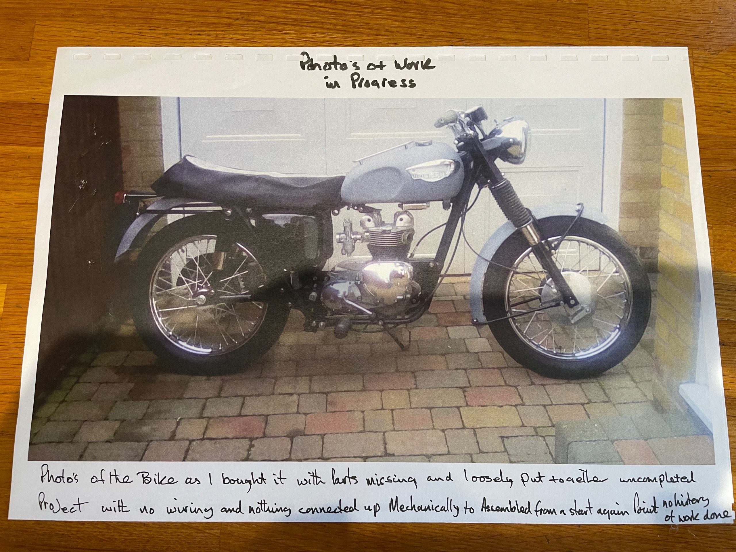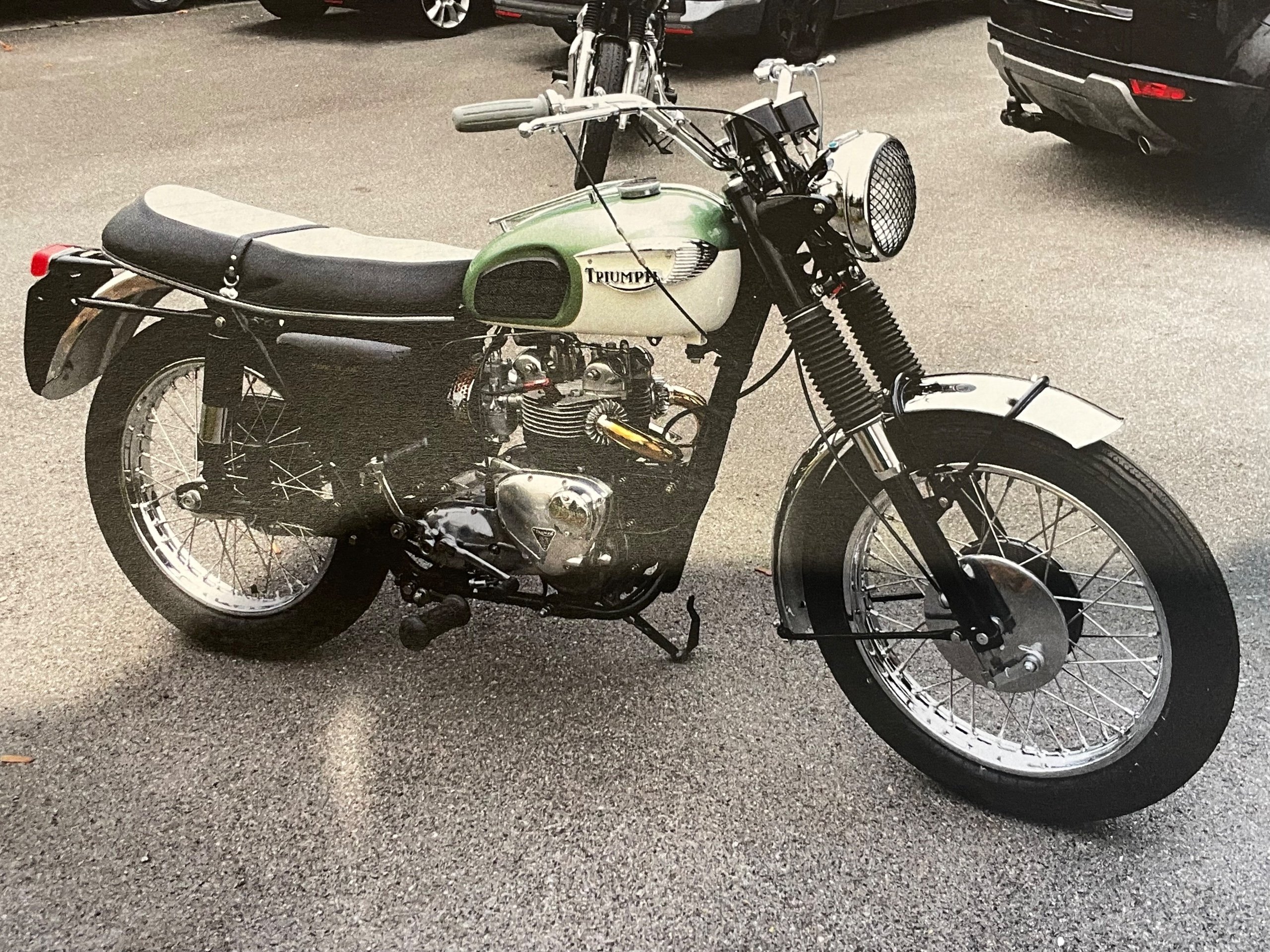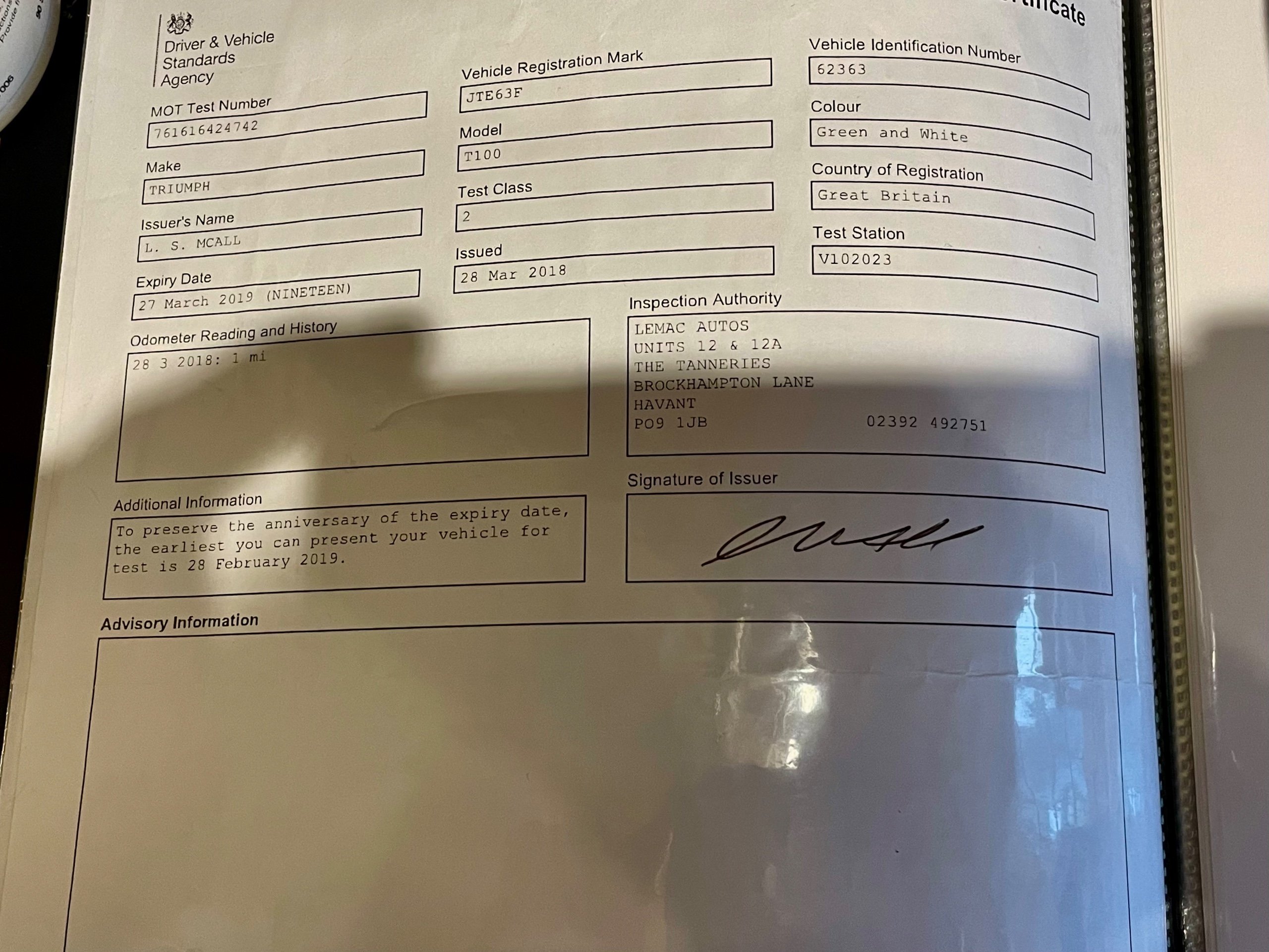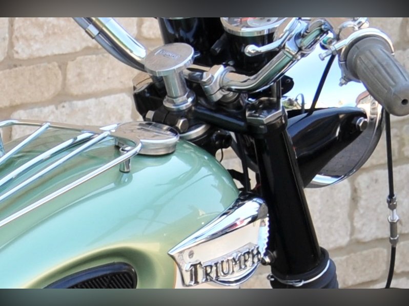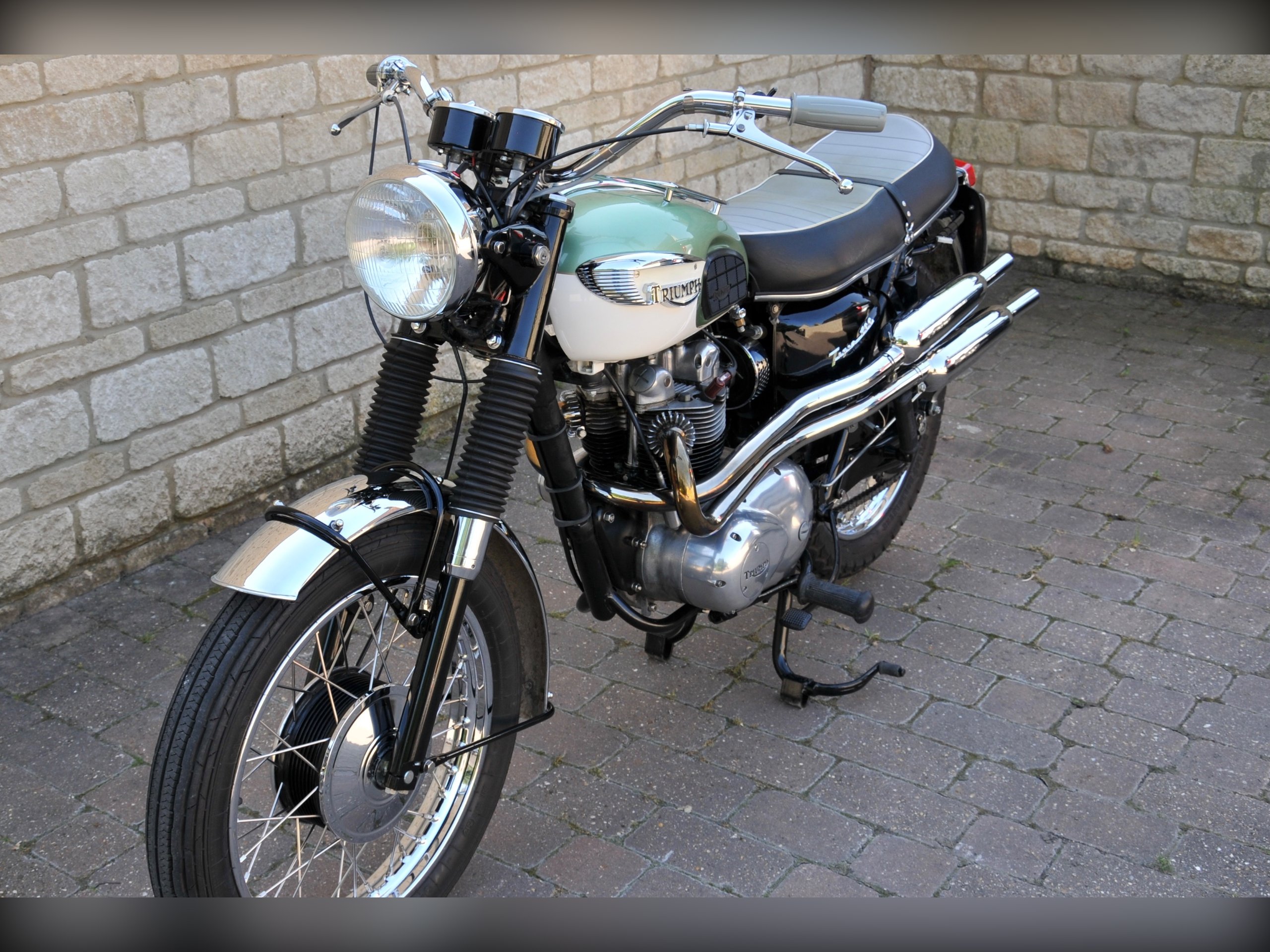 I offer for sale here my Beautiful Classic T100 500cc Triumph.I have owned but never ridden this Completely restored Motorcycle since early 2001 kept warm and dry in my office purely for show. The bike was professionally nut and bolt restored by a Triumph Bike collector between Jan2016 and Oct 2017.A UK Registered Bike in March 1968 it was completely stripped down to the Frame which was then powder coated in traditional Black. The engine received a complete Rebuild,new carb& wiring loom were fitted.The wheels,swing arm,front forks all stripped and rebuilt,brakes relined and all new cables were fitted.The Restoration included the fitting of New Handlebars,tyres,clocks,wheel bearings,duo horns,headlight,Levers,chrome front &rear stainless mudguards,seat,upswept exhaust system,rear shocks,footrests,all sourcing and using NOS parts wherever possible,quite unbelievable detail.All the Engine casings were cleaned/polished and the Tank was cleaned and re painted in the period colours of Mist Green/Off White ,while side panels in Black with all correct decals and Transfers applied.Electronic ignition was added to aid reliability and updated to 12-volt system..I Have a folder of pictures showing the reastoration.I will enter more pictures here shortly. I can arrange a video walk round if you wish.The Presentation of the bike is Immaculate thru- out ,a real collectors machine.Historic Regd so MOT &Tax Exempt. I have the V5 in my personal name,the bike is Tax,d and having only done some 1,300 miles since its total restoration is in virtually as new condition. An oil service at 500 miles and 1,000 miles has been carried out ,the bike sounds amazing.May I invite you to come and view this Fantastic Example ,I promise you will not be disappointed.Call anytime to arrange an appointment and or to chat. I’m a true biker/collector myself,I owned a Honda motorcycle business here in Chichester PO21 for a number of years, but I can’t keep them all. £9995 or very near offer.UK Delivery can be arranged at additional charge.Thankyou.
