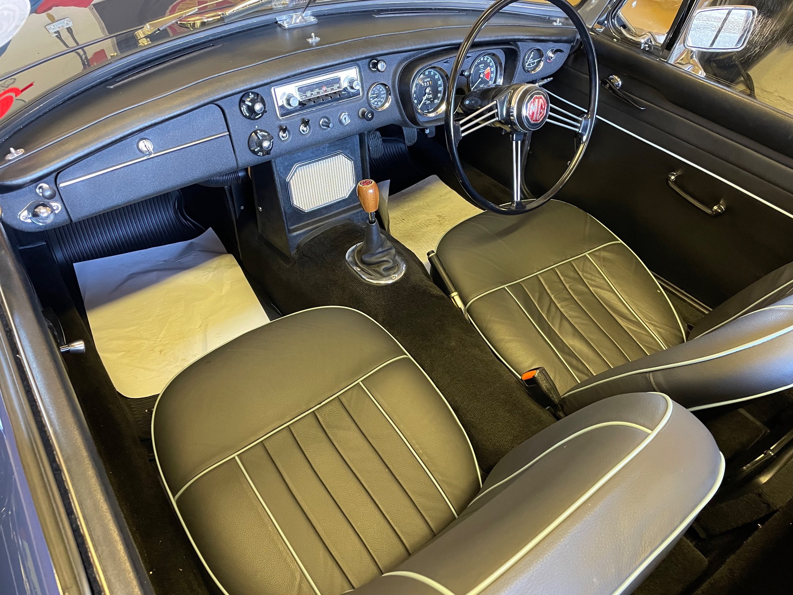 CONCOURS”67”5 SPEED GEARBOX. Fully Restored Roadster.Full Nut and Bolt Restoration starting late 2011 and finishing in 2018.Fully documented.Built to Prize Winning Concours Condition original to its 1967 early build specification 1,700 miles since,With only some 55,000 miles previously covered from New in 1967.Very Recently fitted with the fantastic upgrade Ford Type 9 Five Speed Gearbox as a recommended upgrade by MG Owners Club And Servo dual circuit Brakes ,absolutely superb to drive.Part of a private collection this beautiful example of one of the best Collectable Classic Years to own has been Built to its exacting 1967 Factory Specification to the finest quality and would cost you in a restoration to this highest of standards today double the asking price and a possible wait of over a year to have it completed.This MGB cannot be compared to the many out there on the market that are cheaper,the attention to detail is exquisite,even to the Original Rare Factory Fitted Sports Steel wheels and correct Alluminium Bonnet,in immaculate Mineral Blue Paintwork,superb Chrome throughout with beautiful Fine hide Blue leather seats and all interior completely restored.New Hood.Show Winning Engine Bay has had the Original Engine Professionally Re Built to Fast Road Unleaded Specification,Incl performance camshaft,Upgraded Correct Twin SU Carburettors,performance Manifold and Exhaust System ,Electronic Ignition,all to benefit the wonderful drive on our modern roads.The list is endless,fully documented in its huge restoration file showing almost an £18,000 spend together with CD Rom of the Build and it’s Original Passport to Service Document from its Suppling Dealer in 1967.Comes extremely well maintained and will come with a New MOT,tho it is an Historic Tax and MOT Exempt Historic Vehicle.The last MOT carried out in 2021 was totally “Advisory Free “with less than 1,000 miles covered since.If you are looking for the absolute Top Top early 1967 Spec MGB Roadster to cherish and enjoy,Built to Investment Standard then this is the one to come and see.He will be